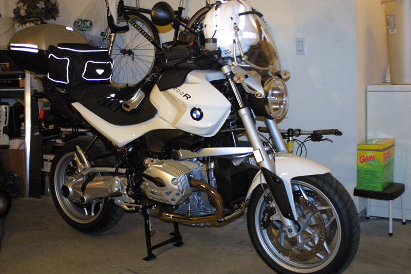 about 5:50pm with a brand new 2009 R1200R that needs some serious