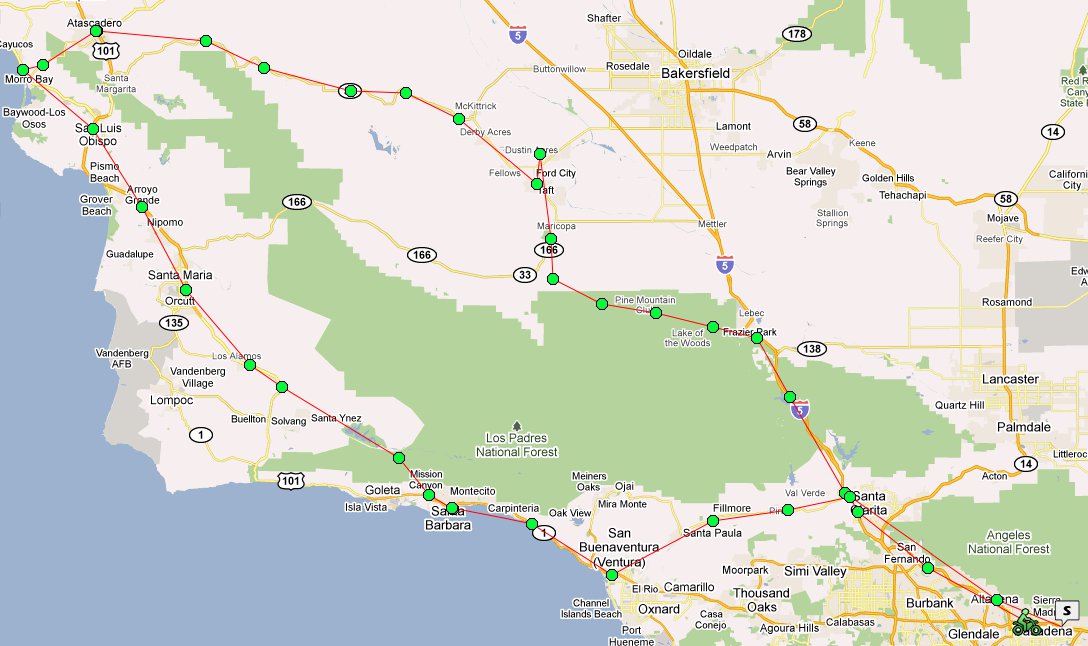 plotted to go on Skyline Road near Taft as a start to our long detour