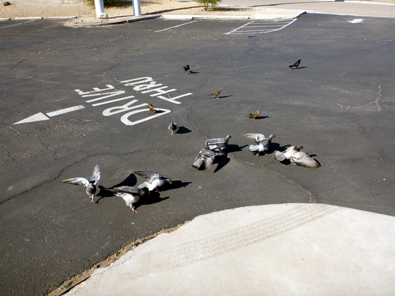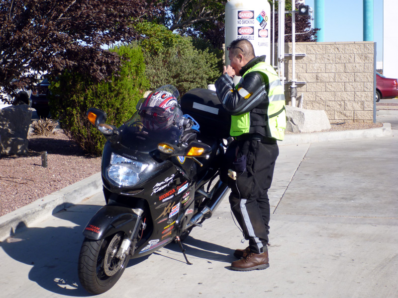 are they doing? We slowly ride pass the gas pumps, while