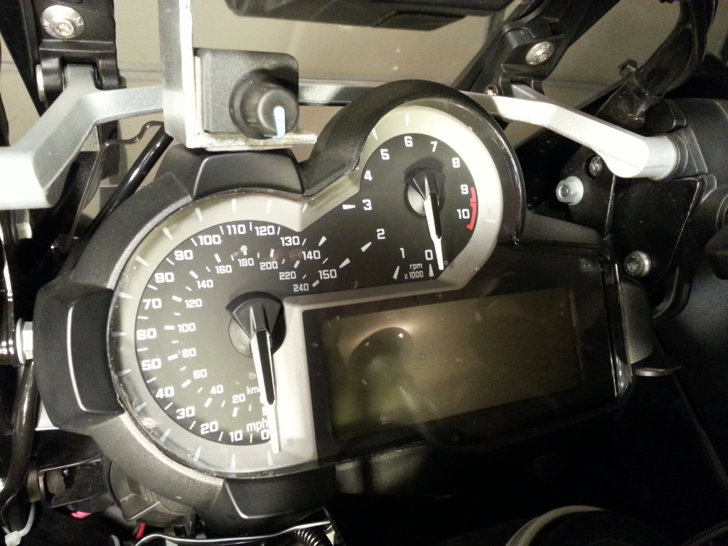 motorcycle: 1) scratched rear view mirror(s), and 2) a scratched up