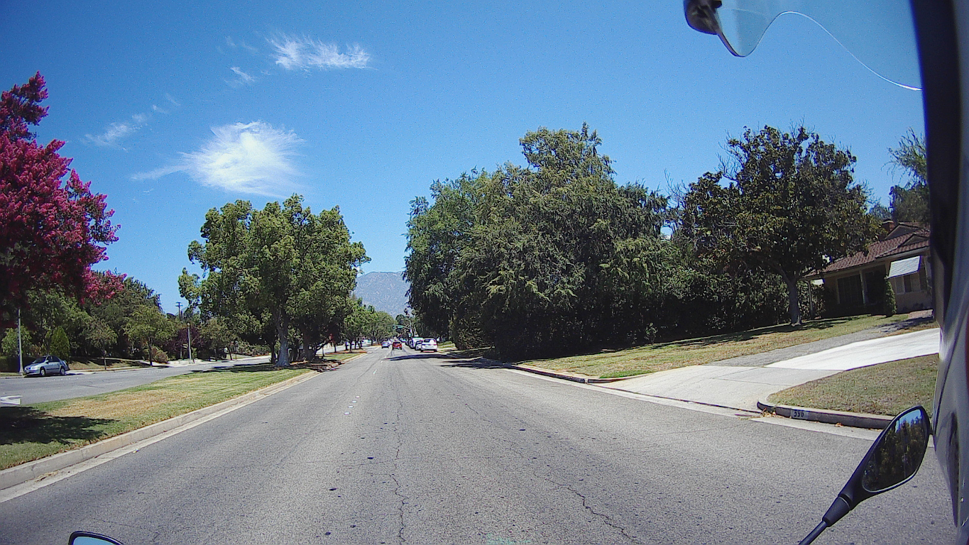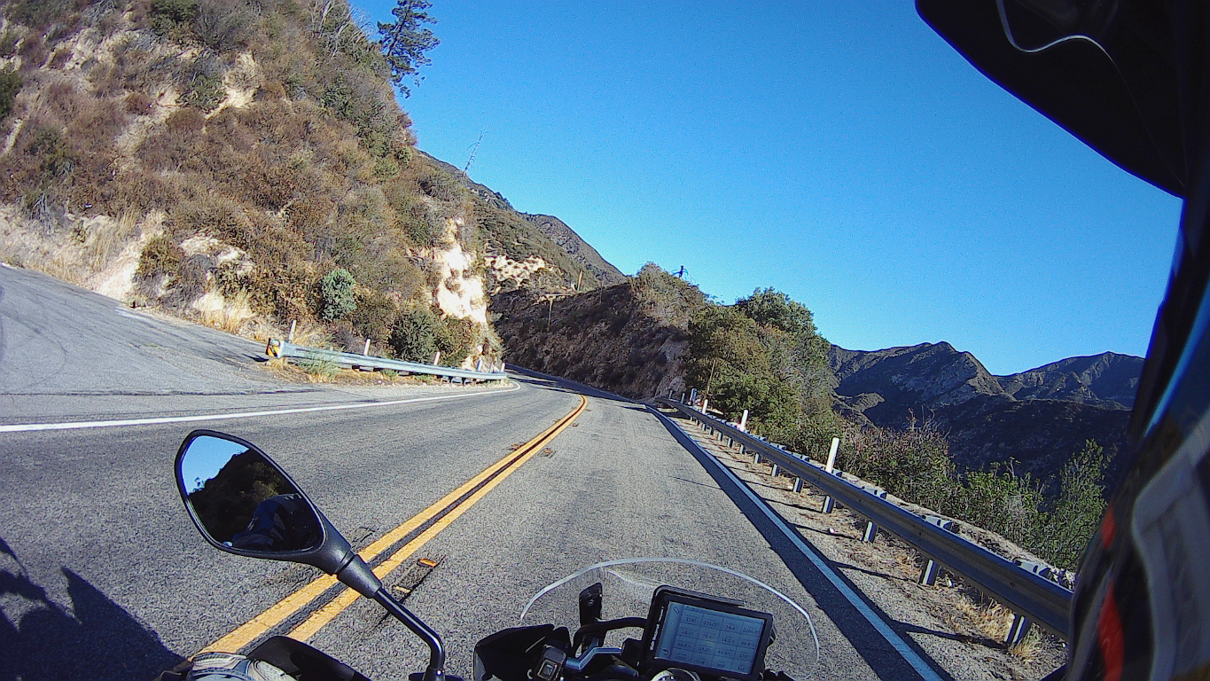 | [ Saturday - July 31, 2020 ] So it's been a while since something was written. Not a whole lot of riding because COVID is still raging. For some odd reason, some of the populous thinks vaccines are a political statement. Associating medicine that keeps you from dying as a political statement against freedom is just odd to me. 1+1 doesn't add up to 2, but maybe it's because I'm just too dense to understand the death and dying situation. Enough about so called politics, I decided to go for a ride. Test out the Sena 10C camera again. This is the camera helmet on the F8R. Definitely a bit tilted. ![]() Slightly scaled down from original. I didn't realize the 10C is leaning at an angle away from the helmet. I was satisfied with the 10C's volume and management that I went ahead and bough a second 10C for the GS helmet. Finally cutting the cord for both bikes. [ Sunday August 1, 2021 ] The next day I changed the GS's windshield and took the bike out for a test ride. The last time I rode the GS, I noticed that the air flow coming off the top of the windshield causes turbulence right around my ear level. Not being 6'4" means the air flow is at just the right wrong place. I guess I notice this more after riding the F8R (without a windshield). So when I swap out the stock windshield for a extremely trimmed Cee Bailey's windshield, I notice there isn't as much turbulent helmet wind noise. I'm going to stick with the small windshield from here out. It's better to have the entire helmet out in the wind flow instead of partially in and out. It's all or nothing. No half assed stuff here. Pretty tilted image. Angeles Crest Hwy