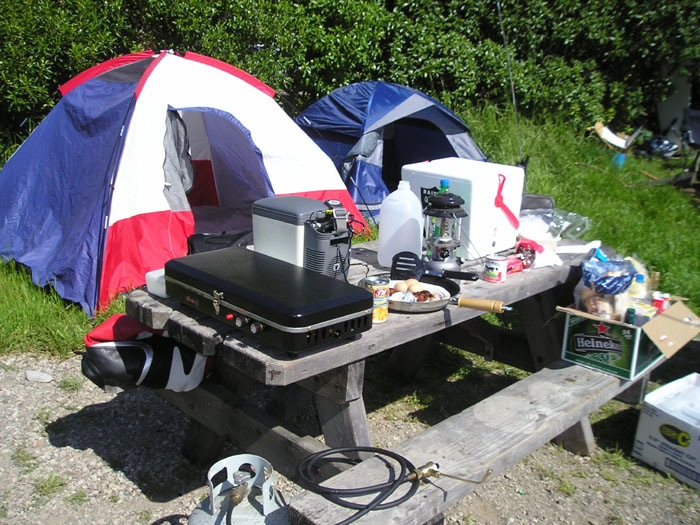 We were too busy unpacked the portable grill, setting up the tents, and