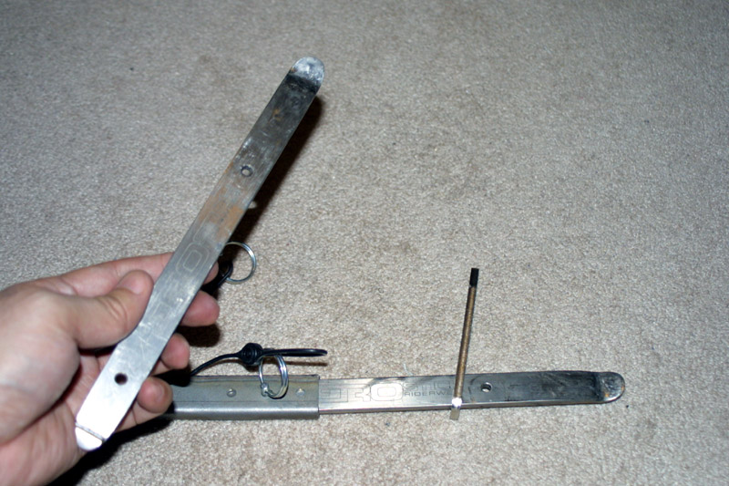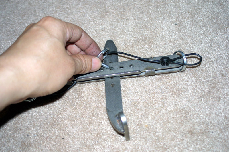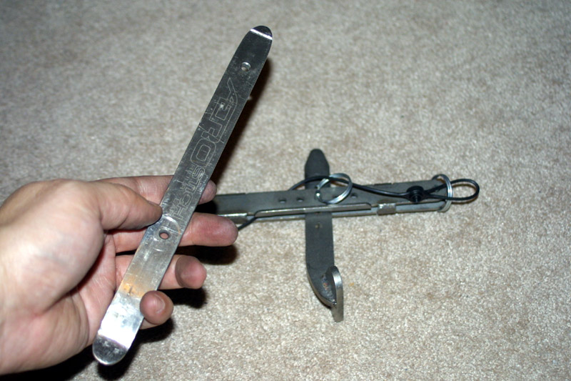 Now install the third and last tire iron as the handle for the lever
