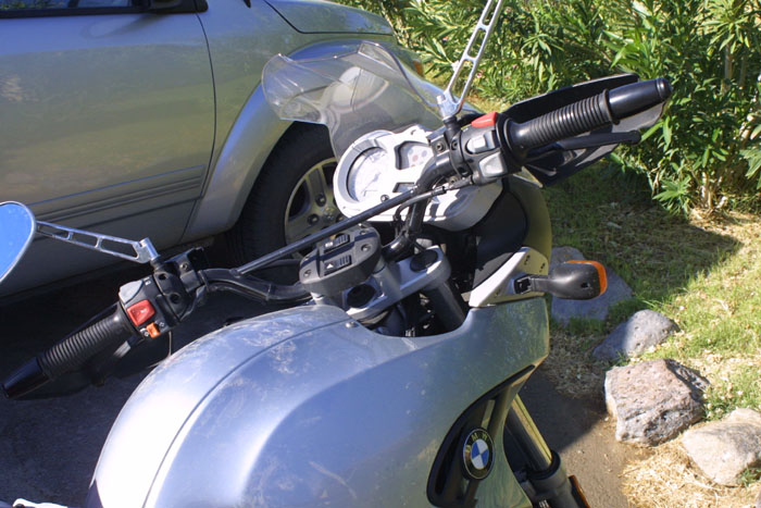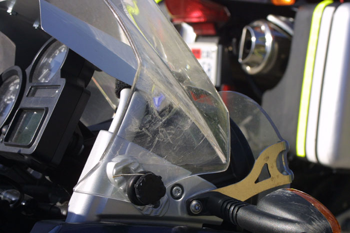 off of our windshield and face shield as we tuck to avoid the insane