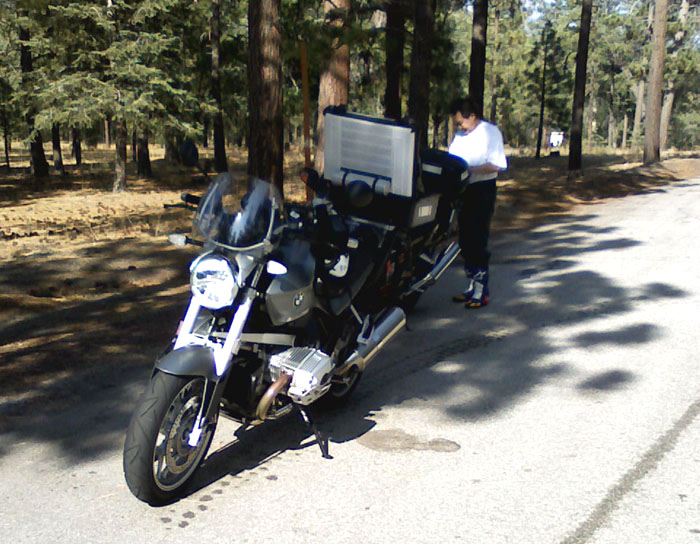 of the 38, we pull off on one of the turn-offs (with a lot of shade)