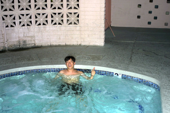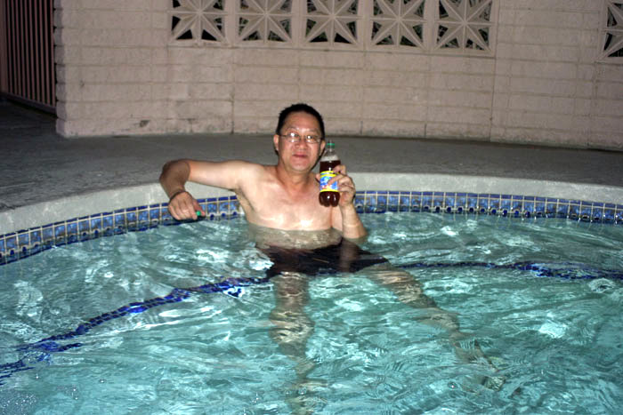 Warming up and chilling out in the jacuzzi. Ice tea anybody?