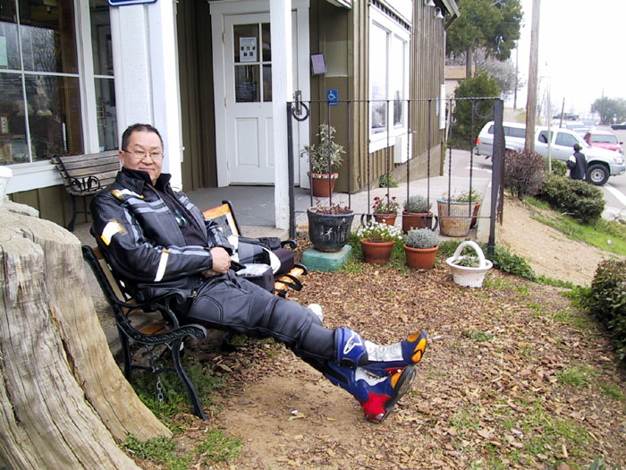 a set of sport bikers as we ready ourselve to turn right onto the 79