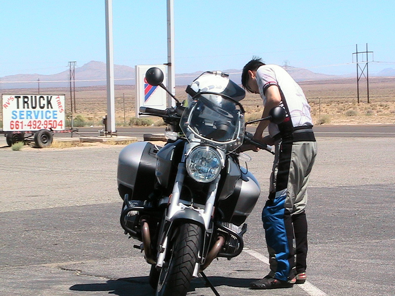 We fuel up for the last time before heading up to Mammoth Lakes.