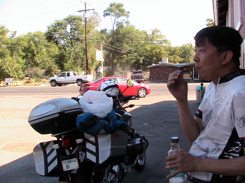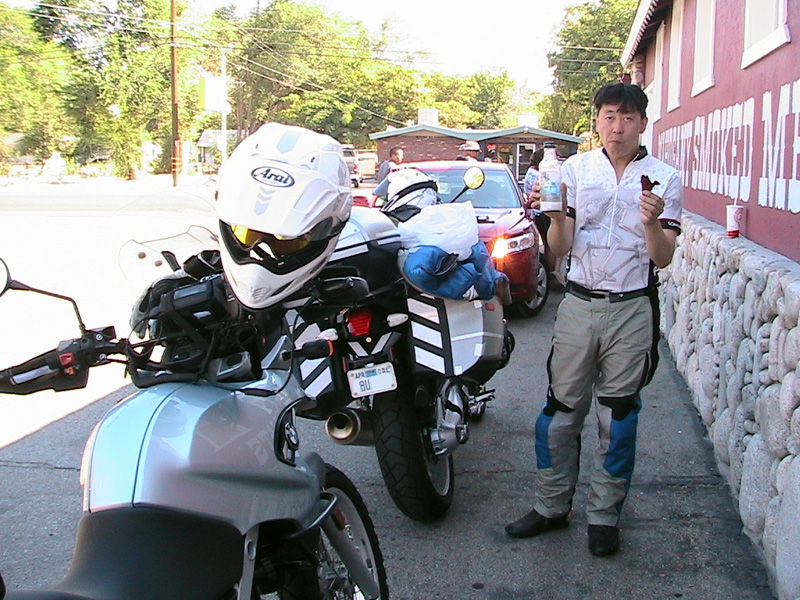 to wake ourselves up. Funny thing, as we park our bikes, a older