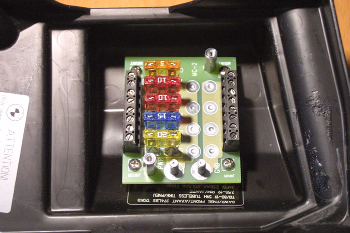 The side with the fuses (left side) is the power (+) and the right side