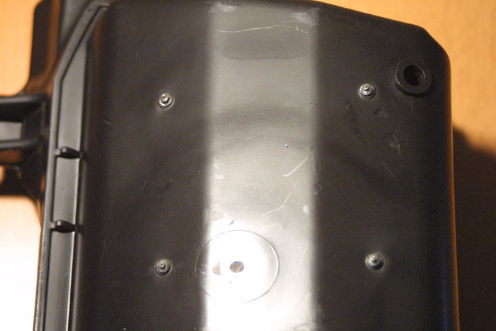 The bottom of the tool tray with the 4 screw showing through.