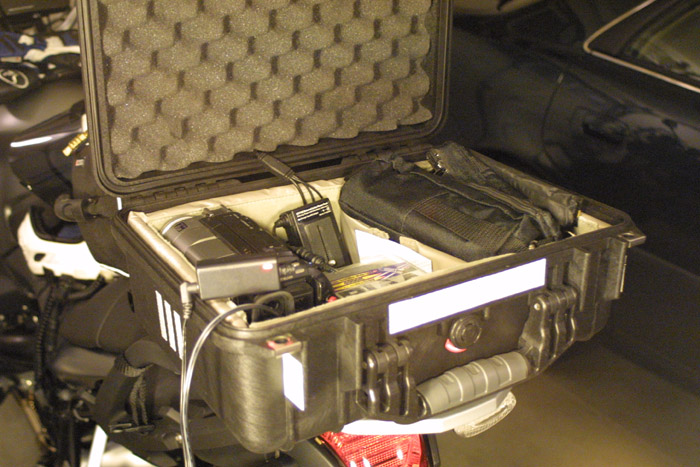 tube on top of the Pelican case as added storage for non-critical