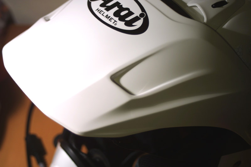 New chin spoiler to prevent air swirling up into the helmet.